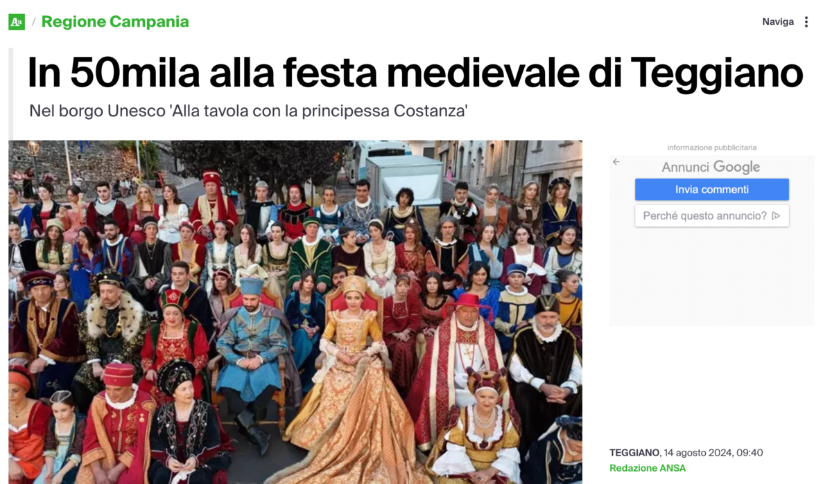ANSA.IT: Teggiano, sold out “Alla Tavola della Principessa Costanza”