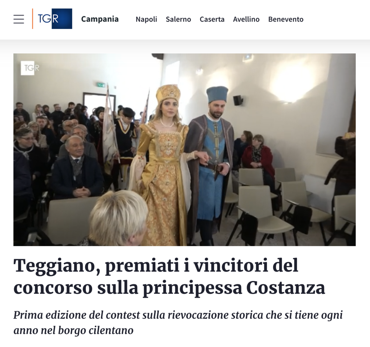 TGR Campania dedica un servizio al Concorso “IncontrArti a Teggiano – Alla Tavola della Principessa Costanza”