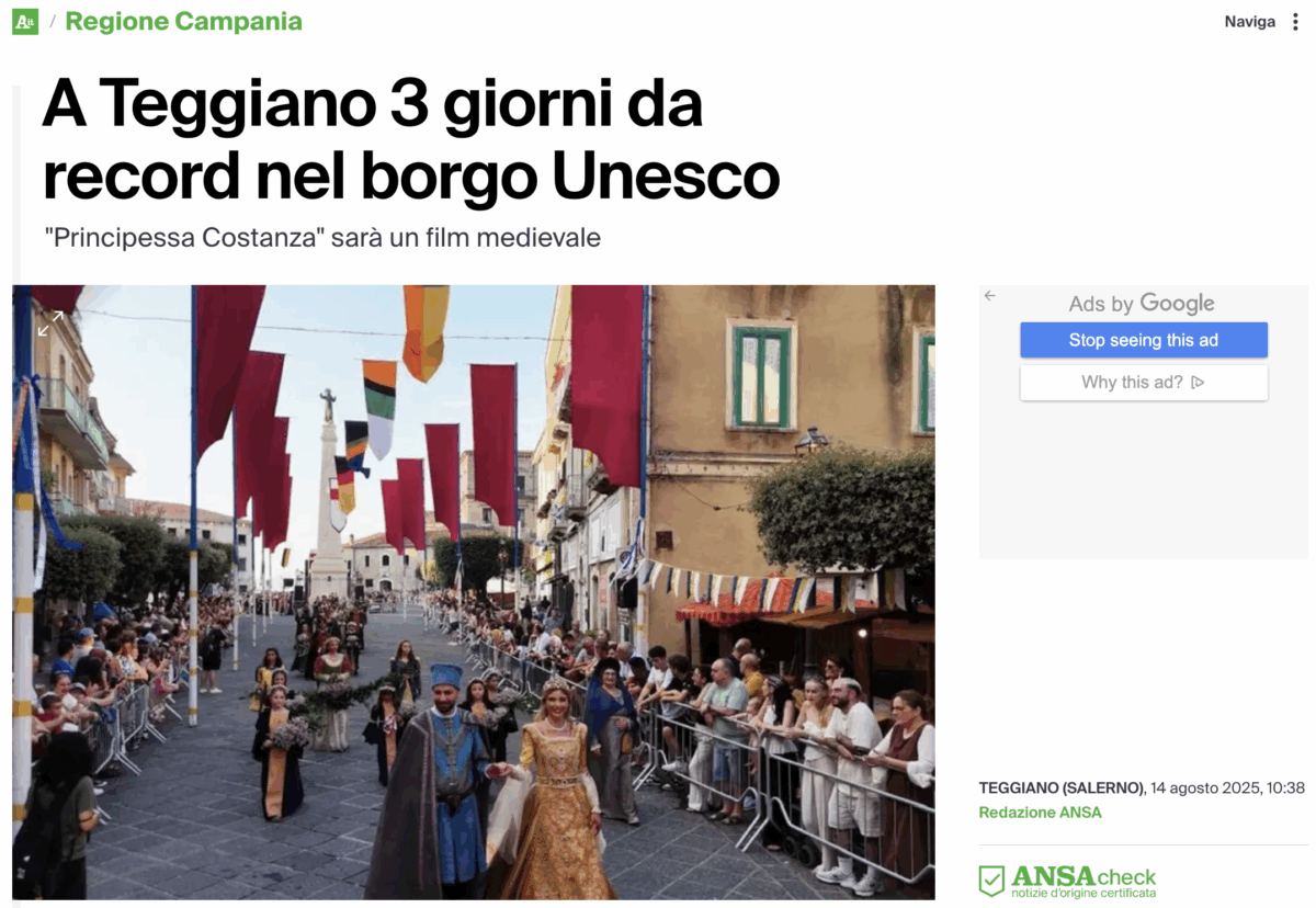 ANSA.it: A Teggiano 3 giorni da record nel borgo Unesco, “Principessa Costanza” sarà un film medievale