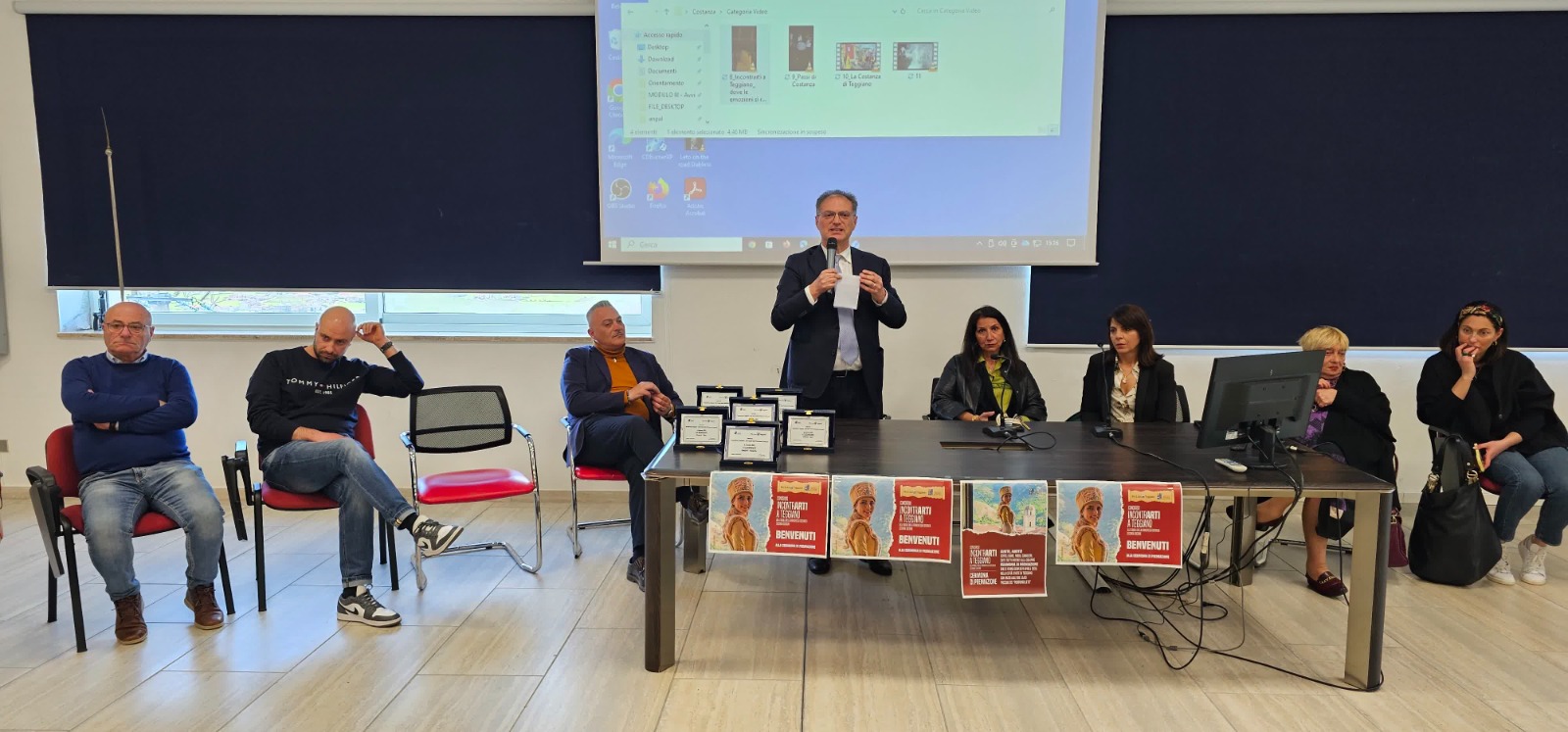 Alla cerimonia hanno preso parte numerose autorità e rappresentanti del territorio: la Dirigente Scolastica dell’IIS “Pomponio Leto” Maria D’Alessio, l’Assessore del Comune di Teggiano Lisa Grazia Babino, il presidente della Pro Loco Teggiano Biagio Matera, insieme a diversi membri del CDA, e il direttore artistico della 30ª edizione de “Alla Tavola della Principessa Costanza” Giancarlo Guercio. Presenti anche Vincenzo La Maida e Greta De Paola, interpreti negli ultimi anni del Principe Antonello Sanseverino e della Principessa Costanza, figure simbolo della rievocazione medievale che rappresenta uno degli appuntamenti più attesi dell’estate salernitana. La cerimonia di premiazione è stata moderata dalla giornalista Danila Pia Casella.