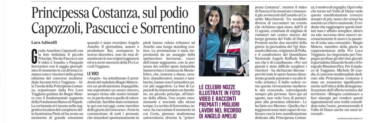 Il Mattino di Salerno racconta la prima edizione di “IncontrArti a Teggiano – Alla Tavola della Principessa Costanza”