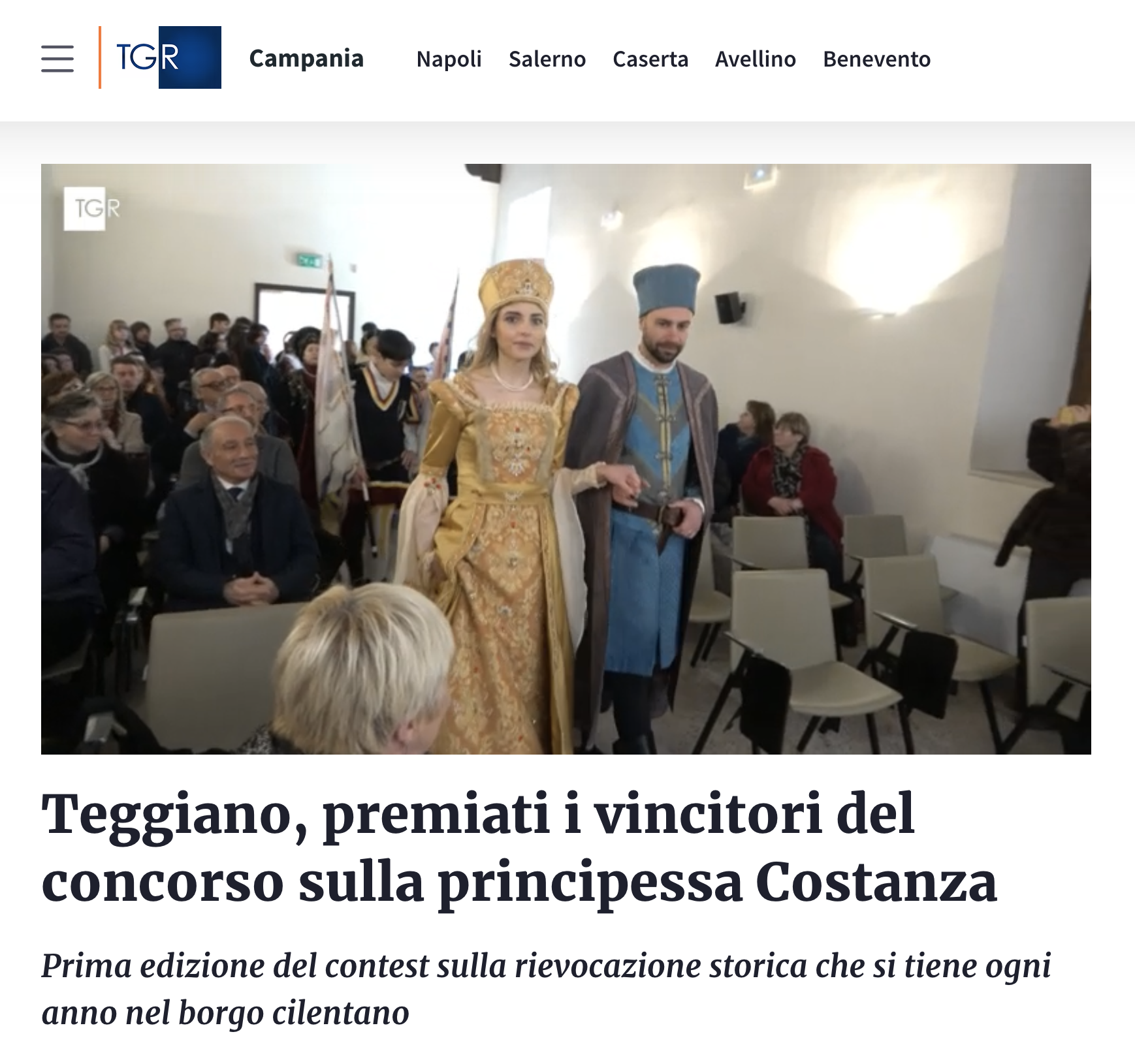 Il TGR Campania ha dedicato un servizio speciale alla prima edizione del Concorso Multimediale ‘IncontrArti a Teggiano – Alla Tavola della Principessa Costanza’, raccontando le emozioni vissute durante la cerimonia di premiazione e l’atmosfera unica dell’evento. Le immagini e le interviste ai protagonisti hanno messo in luce l’alto valore artistico e culturale dell’iniziativa, che ha saputo coinvolgere pubblico e giuria in un’esperienza indimenticabile.